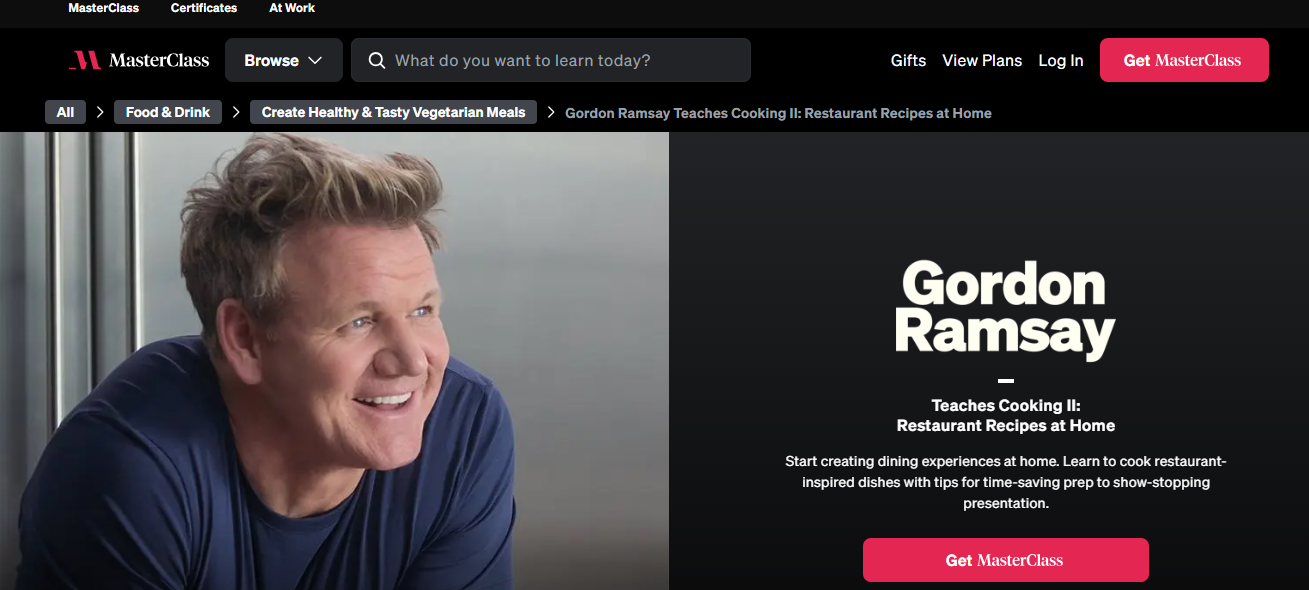 Take an Online Class: Find tutorials given by professionals on Masterclass (including Gordon Ramsey).